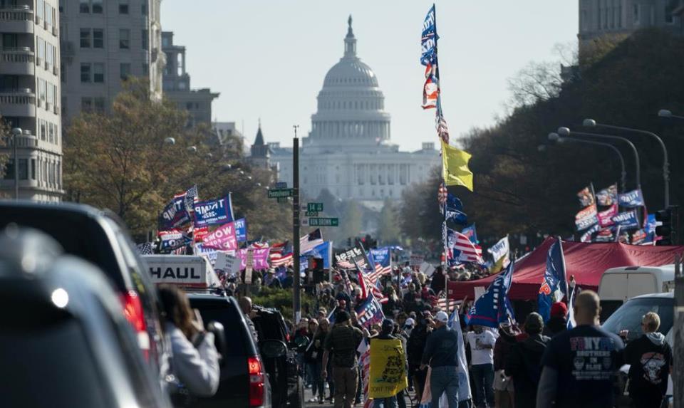 一件事,成千上万特朗普支持者走上街头,指责选举舞弊,要求特朗普再干四年。