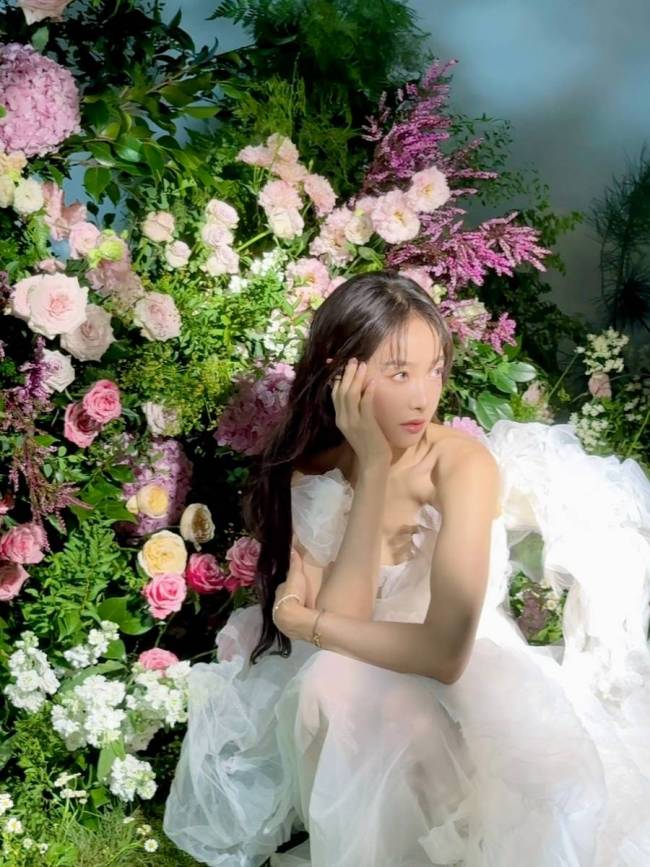 宋茜拍摄的一组写真花絮照曝光,她身着白色抹胸纱裙,在繁花丛中拍摄美照,宛若花界仙女,沐浴在光辉之中,仙气十足。