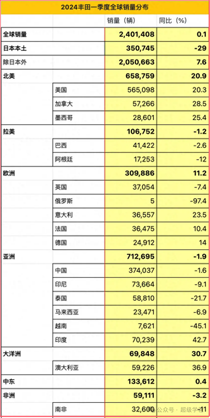 这个当前已经呈现这种趋势了。比如丰田,虽然说全球销量依然如日易中天,但在中日相对公平的亚非拉市场,丰田产量是大幅萎缩,而中国汽车份额剧增。