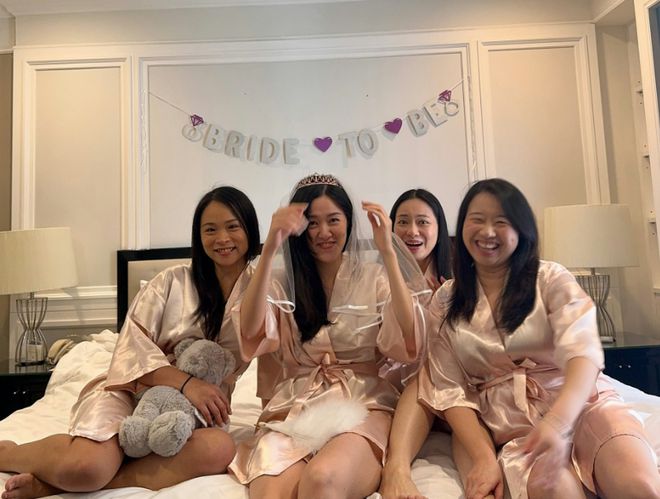 昨日钟溥敏在社交网分享婚前派对的照片,她与3位闺蜜飞住曼谷庆祝将做人妻。钟溥敏身材出众,经常在社交平台大晒性感身材,但这次与闺蜜同行收起性感,戴上头纱与友人穿上粉色系,在床上大摆不同姿势拍照,钟溥敏留言称:“曼谷单身派对!感谢所有的准备和爱,我永远最好的朋友!为我们美丽的幸福干杯!”