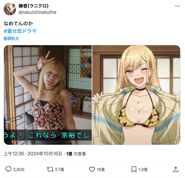 这是2018年开始连载的漫画,作者是福田晋一,故事讲述喜欢制作女儿节娃娃的高中生「五条新菜」与喜爱Cosplay的美少女辣妹喜多川海梦的故事,之前有动画,现在则是改编为电视剧,由由永濑莉子与野村康太演出ー至于为什么说「惨遭真人化」?因为不久前播出漫画的名场面、也就是男主角五条新菜替喜多川海梦丈量尺寸的一幕被批评还原度极低,不只饰演女主角的永瀬莉子衣服穿得很多,妆容更是老态龙钟完全没有原作的辣妹气息,所以批评如雪片般飞来,从上面这篇发文有了1亿次的触柔你就知道大家有多怒〜
