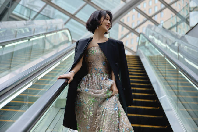 赵丽颖身穿香槟鎏金高定裙 搭配黑色短发干练大气