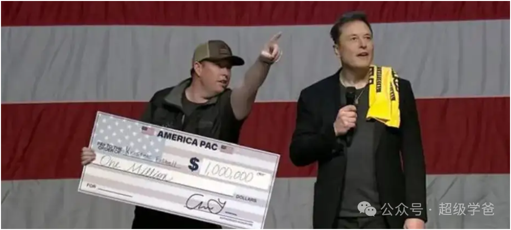 比如马斯克,每天能随机发放100万美元,给谁呢?给关键摇摆州——宾州的某位幸运儿。不过有条件,必须是支持特朗普的,在支持特朗普的“美国政治行动委员会”请愿书上签字的。