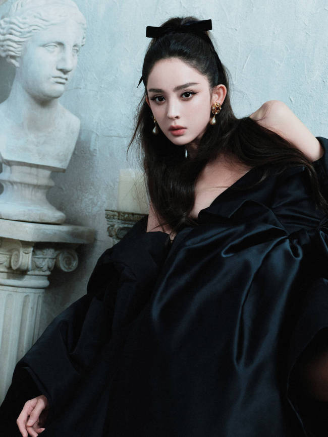 古力娜扎穿黑色抹胸裙秀好身材 宛若油画中的美人