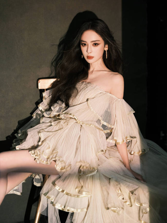 近日,一组娜扎身穿鎏金荷叶边裙的美图释出,她肤白貌美,红唇更凸显气质,大波浪卷发飞扬,美丽动人。