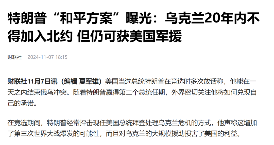 虽然,媒体报道的原话是:“特朗普眼下还没有决定具体的和平方案”。