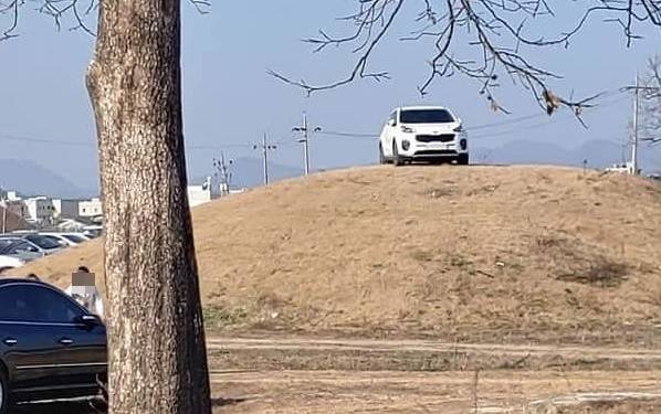 国庆尚北道庆州市,一座1500年历史、高达十米的新罗王室古墓上,竟然停了辆白色的起亚SUV。现场照片被网友曝光后,引发民众愤怒,当地政府表示,若造成古墓损坏,将以法律手段处理责任人。不过,目前责任人仍未找到。