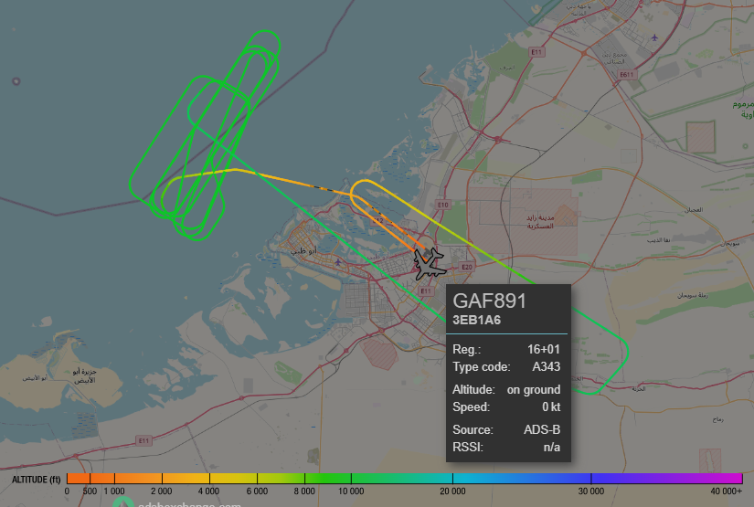 德国空军分享的试飞信息截图,可明显看到试飞高度(见前图底部高度量表,颜色代表高度)远低于巡航高度