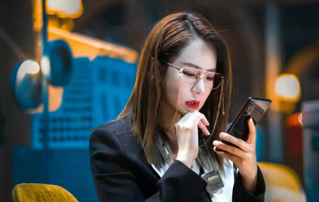 戚薇一身黑色西装化身职场佳人 低头沉思气场强大