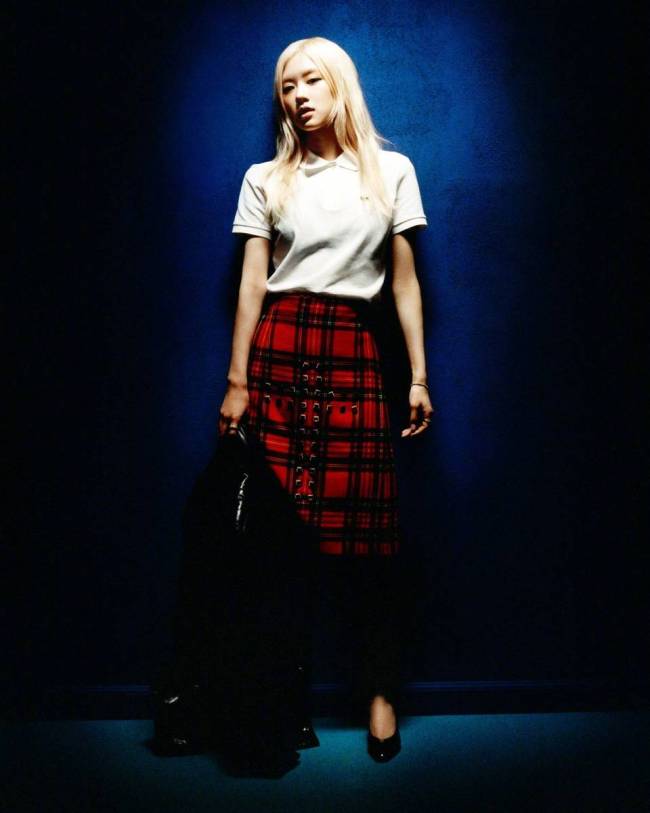 朴彩英穿吊带V裙性感成熟 戴红白眼罩气场强大