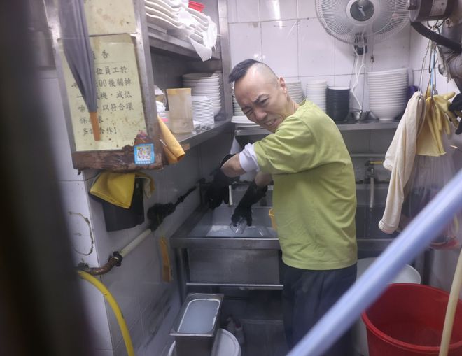 至于要否亲自洗碗,他说:“都要的!通常我要戴手套洗,这个过程就比较热,环境都好狭窄,之前30几度的时候都好难适应,我试过蹲下洗,一起身就觉得天旋地转。”
