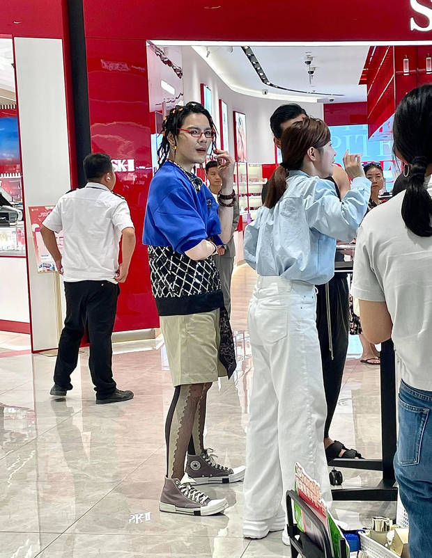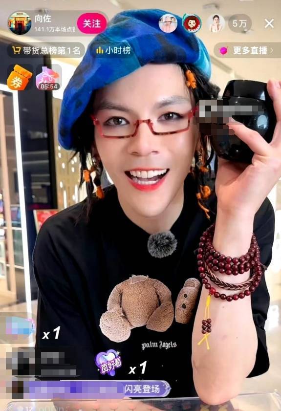3日,向佐最新直播造型曝光,他戴着红色半框眼镜,涂着口红,穿短裤搭配黑丝,还扎了满头的小辫儿,叠穿加混搭造型十分独特。