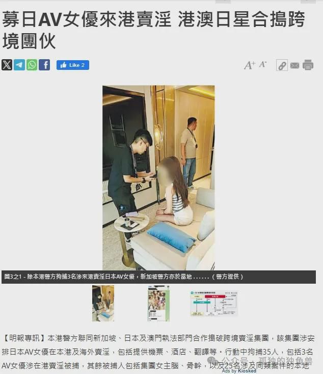 根据警方资料,今次破获的日本女优团主脑芳龄37,十多年前已立足于援交跑道,及后退居幕后做职业经理人,据报系一位出色的妈妈生,吸金力强,砖头买完一间又一间。因为经营出色才华出众,网上芳名更加被同行盗用,早前在微信被人冒充身份骗财。