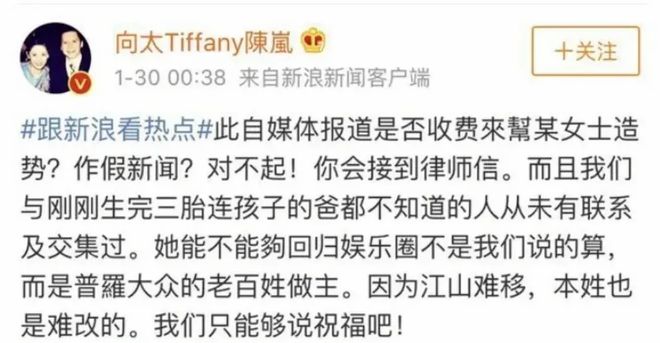 此事成为外界攻击张柏芝私生活混乱的借口,尤其是此前与她关系一直很好的向太突然发文宣布与她决裂,说不愿意和三胎爸爸都不知道是谁的人来往。