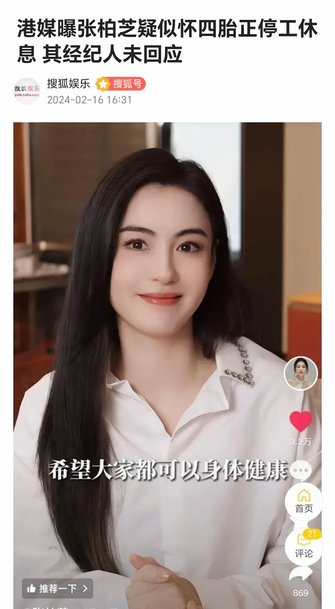 在此之前,张柏芝并没有透露出身体抱恙的迹象,这突如其来的停工让外界议论纷纷,之后港媒更是曝出张柏芝疑似是因为怀了四胎,不得不暂时休息。