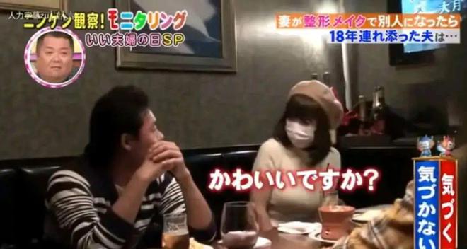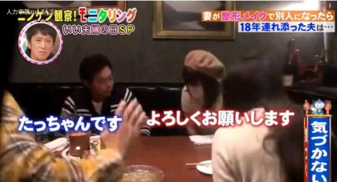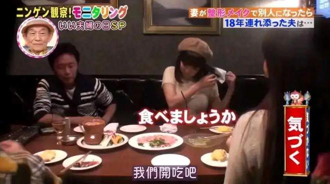 为了测试丈夫的反应,节目组安排长泽以“朋友”的身份坐在丈夫身边,口罩遮脸,与他和朋友一起共进晚餐。
