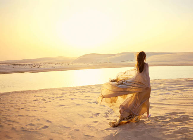 杨颖沙漠大片展现异域风情 夕阳下独舞美如画