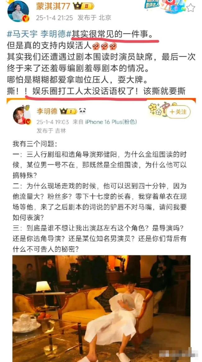 1月4日截止到目前,娱乐圈内“三人行剧组”相关事件在网络上引发了诸多网友的关注与热议,一系列当事人的发文使得事件不断发展,引起广泛讨论。当事人李明德、“三人行剧组”、马天宇等先后纷纷发文爆料、回应。从4日到5日凌晨,整个话题的讨论、热搜、阅读量仍然在不断攀上。演员李明德更是创造了了多个不可思议的数据。