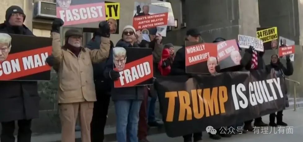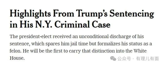 封口费本身并不违法,但当年的特朗普不知道是因为心疼13万美元(照理来说对一个亿万富翁不算什么),还是做假账做惯了,通过伪造公司业务记录,隐瞒并报销了这笔钱。后来,科恩与特朗普闹翻,出任污点证人揭发了特朗普的撒谎行为。而按照美国纽约州的相关法律,掩盖罪行虚假陈述,可就够得上刑事重罪了。而每项罪名都可能被判处最高四年监禁,也就是说特朗普将因此面临最高136年的刑期。136年,这才是真正意义上的牢底坐穿。特朗普听到宣判后就慌了,立马四处寻找让“定罪非法化”的办法。思来想去,他只想到了一个办法,那就是当选总统。这就是特朗普为什么会在竞选期间疯狂为自己拉票的原因,如果他落选了,光一个重罪的刑期就够他受的,更别说他有足足34个。特朗普已经78岁,况且他还是那种爱慕虚荣、渴望金钱和权力的人。对他来说,蹲大牢就意味着没有金钱、权力,也没有他最爱的高尔夫,最主要还丢脸,这些都足以让他生不如死,所以他拼了命地到处举行长达数小时的演讲,“MAGA”是假,替自己脱罪才是真。我们回到1月10日最终宣判当天,特朗普以视频连线的方式出席了此次听证会。他坚称自己无罪,没有做任何错事,并声称自己是被政治对手瞄准的,司法部以某种方式推动了此案。在法院外,一群人举着横幅,上面写着“特朗普有罪”。美国纽约州最高法院法官胡安·梅尔尚法官表示,如果特朗普是一名普通公民,那么他会立刻判其有罪并送他进监狱,但现在情况不一样,他现在是总统。该案件原定于 2024年7 月11日进行宣判,随后又将日期改定为9月18日。期间,特朗普要求将宣判推迟到大选之后,他在赌,赌自己能赢下大选从而逃过牢狱之灾。最终,竞选结果如他所愿,他赌赢了,他赢得了大选,获得了他迫切需要的“免死金牌”。由于案件长时间的拖延,再加上特朗普当选总统,梅尔尚表示“本法庭从未遇到过如此非同寻常的情况,经法院裁定,唯一允许做出有罪判决且不侵犯国家最高权力的合法判决是无条件释放。”随后,他在祝愿特朗普“第二任期一路顺风”后便离开了法官席。这句“一路顺风”听起来颇具讽刺,可以清晰的感受到法官的无奈,但屈于特朗普的身份而不得不释放他,这或许将成为纽约法院的污点,甚至是美国史上的污点。反观特朗普这边,一听到法院宣判他无条件释放就立马开始上嘴脸,他在社交平台发文称,“这可真是一次可怕的经历,而且我早就说过,我完全是无辜的,这场骗局应该被完全驳回。”特朗普的律师托德·布兰奇看到自己主子平安了,也立马开始抨击起此案的合法性,他重复特朗普经常挂在嘴边的一句话“此案相当于干预选举”。他甚至将此次案件形容成对特朗普的家人乃至整个国家来说都是“悲伤的一天”。确实,让一个“重罪犯”担任一国之主确实是美国“悲伤的一天”,不过这让人想到了美国前检察官埃利•霍尼格说的话:“我们总喜欢说在美国没人能够凌驾于法律之上,但事实上总统就是和别人不一样。”据听证会后的民意调查结果显示,有48%的成年人表示他们认为特朗普在“封口费”案中犯了罪,对于宣判结果,有39% 的人认为判决不够严厉。民众开始质疑司法机构是否已沦为政治的傀儡,法律的权威性在他们心中大打折扣。但特朗普可不管美国民众怎么想,他只知道自己不用坐牢了,在听证会结束后还悠闲地打起了高尔夫,他似乎是在用这种休闲的状态来向人们证明“我特朗普一点都不怕纽约法庭的判决,我一点都不慌,我是总统我无罪”。他带着标志性的“特朗普做所有事情都是正确的”帽子,开着高尔夫球车在特朗普国际高尔夫俱乐部的球场上飞驰。似乎无条件释放的喜悦让他忘记了自己在这里曾差点被暗杀。此次审判再次刷新了美国法律的下限。一个重罪犯,在各项罪名成立且证据确凿的情况下,法院不但不予惩罚,甚至直接无条件释放。关键吧,法院还一本正经把这个案子办瓷实了,整个流程也走完了,结果又不给特朗普相应的惩罚,那这案子办起来有什么意义?拖了这么久,本以为憋了个大的,结果拉了坨大的。“法律面前人人平等”“司法独立”似乎在美国成为了一个笑话。这样的判决结果证明美国所谓的法治不过是政治斗争不激烈时的一种装饰品,而与政治私利、权力博弈正面冲突时则不堪一击。而且在宣判后,誓言上诉的特朗普迅速利用这个机会,以“想听听支持者的声音”为名发送筹款电子邮件。电子邮件链接到一个请求捐款的页面,页面中列出了建议从10美元到3300美元不等的捐款金额,并询问支持者在他被量刑后是否“与他站在一起”。这一刻,美国政客的贪婪荒唐又被特朗普带到了一个新高度,一点不落拜登赦免自己儿子的下风。这一刻,美国司法制度不仅是失败,而且早已经被这些特权阶级羞辱得体无完肤。现在,既然候任总统都带这个头了,谁知道之后还会不会有其他的罪犯进入白宫,索性干脆不要在白宫办公了,直接去监狱算了,反正都是罪犯,到哪都一样。