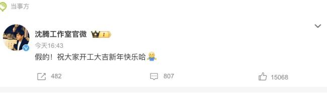 5日,沈腾、林允的相关话题引发关注,16:43沈腾工作室发回应辟谣:“假的!祝大家开工大吉新年快乐哈”,否认恋情传闻。