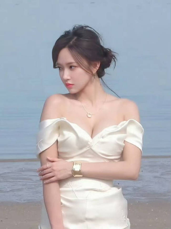 程潇穿白色裹胸裙温婉灵动 怀抱双手大眼闪耀迷人