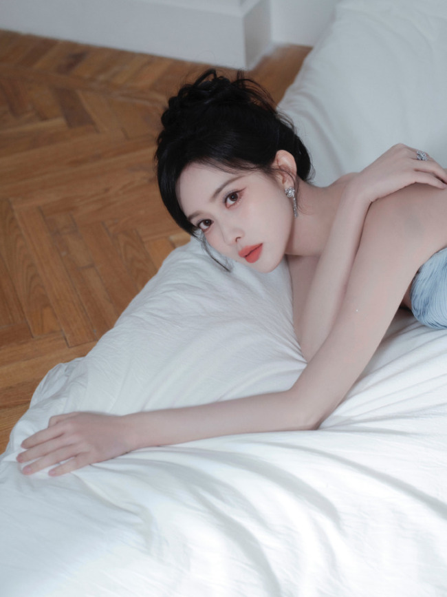 孟子义蓝色长裙清新优雅 五官精致身姿曼妙