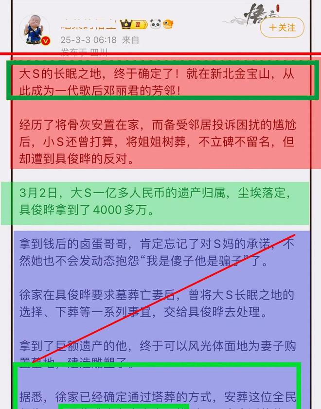 当然了,从开始的树葬到现在的塔葬,可能这也是S家人想出来的托词,疑似目的就是把大S的骨灰继续留在豪宅里面,然后把豪宅拖成凶宅,低价入手。