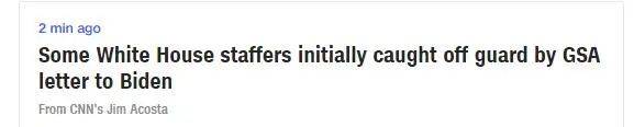 CNN还提到,一些白宫工作人员最初被美国总务管理局(GSA)写给拜登的信弄得措手不及。