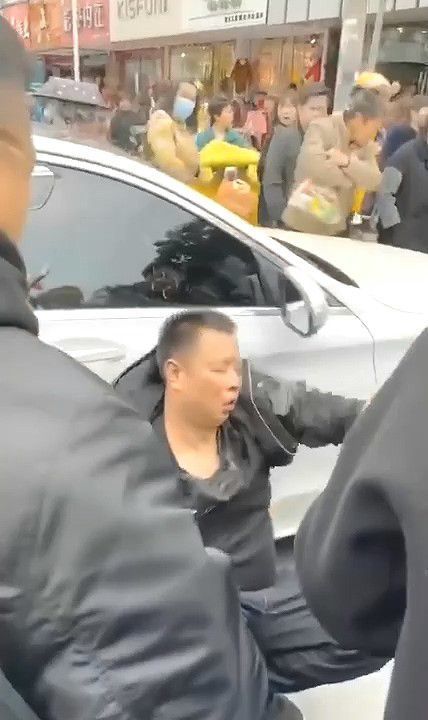 根据拍到的视频显示,奔驰车主被围攻后似乎受伤,一身瘫软的缓缓倒地。