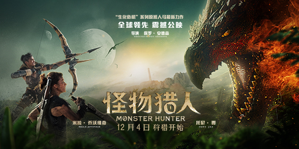“生化危机”系列原班人马最新力作《怪物猎人》将于12月4日全国上映,今日发布了中国独家终极预告、海报,火爆预售也已同步开启。《怪物猎人》此次内地公映领先全球,使国内观众有机会惊喜“尝鲜”。同时本片将以中国巨幕、IMAX、杜比全景声、CINITY等多版本全制式放映,观众将有机会更好地在影院感受好莱坞顶级视效制作带来的视听震撼。作为今年唯一一部登陆内地院线的怪兽巨制,《怪物猎人》无疑将是这个寒冬岁末最不容错过的爆爽动作大片。