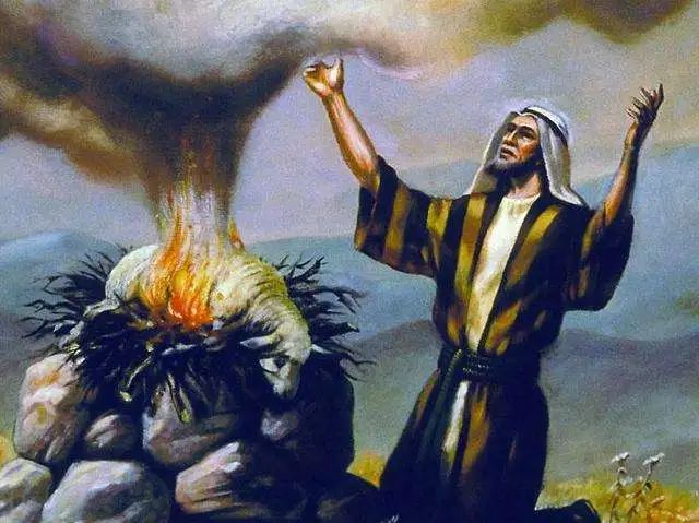 根据圣经记载,上帝为了考验亚伯拉罕,叫他把独生子以撒杀了做燔祭献给上帝,正当亚伯拉罕要持刀杀子的时候,天使阻止了他,叫亚伯拉罕用山羊代替以撒做燔祭。