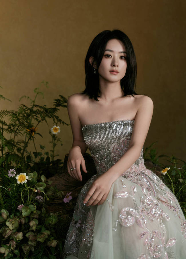 赵丽颖穿珠片刺绣裙精致靓丽 被鲜花簇拥明媚优雅