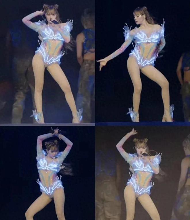 不知道谁给Lisa搭配的衣服,这是从成人店里面买的吧?黑色加真空,就这么水灵灵站在了舞台上。和男舞伴的配合也相当辣眼睛,以前是擦边,现在是擦中间了。点进直播现场的观众都得确认一下,自己是不是进错了地方,不知道的以为进入成人频道了。