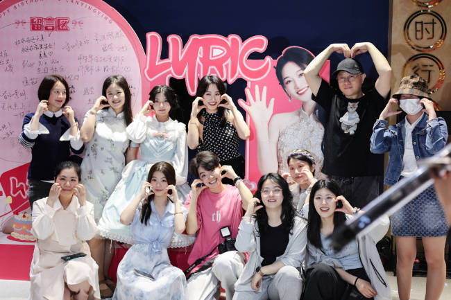 蓝盈莹生日与粉丝们聚会 穿波点挂脖吊带笑容甜美