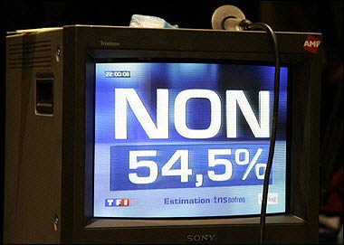 资料图:当地时间2005年5月29日,法国就《欧盟宪法条约》举行全民公决投票,超过半数选民投反对票,《欧盟宪法条约》在法国未获通过。
