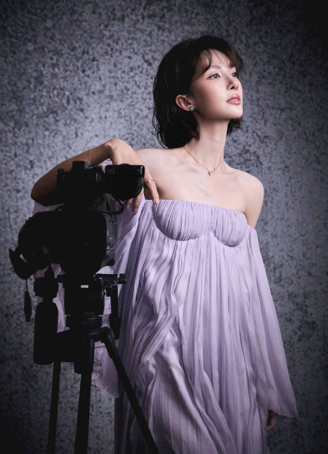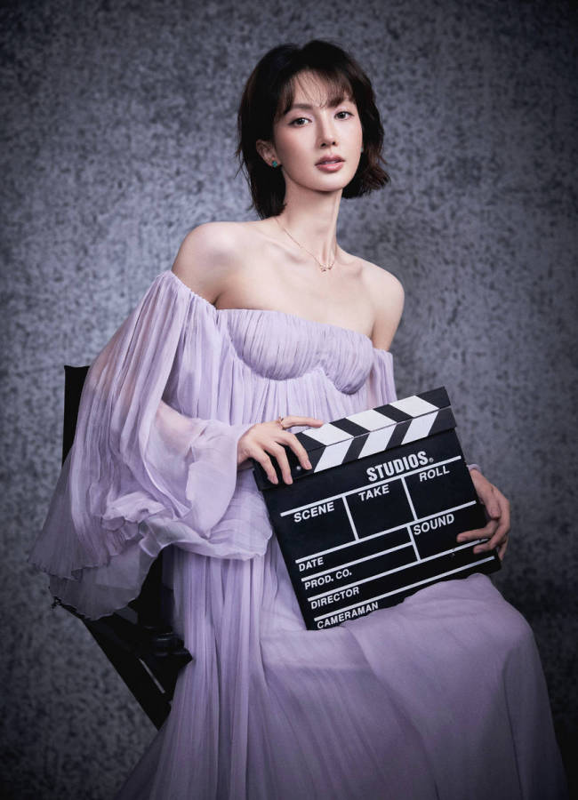 金晨穿抹胸裙优雅明媚 短发干练凌厉释放复古气息