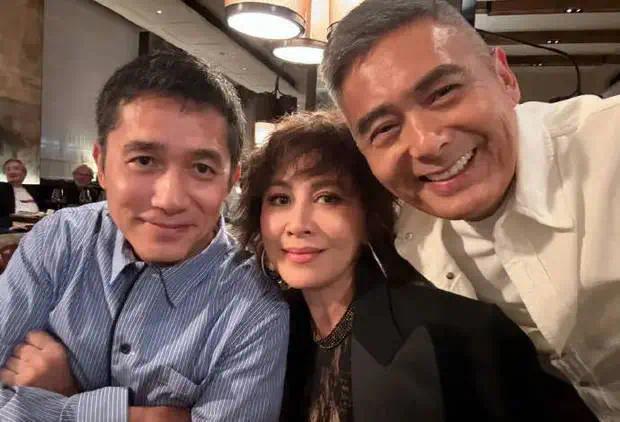 刘嘉玲周润发同框合影,刘嘉玲微卷的利落短发造型十分吸睛。