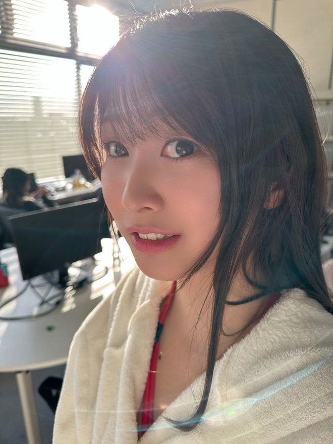 所以你会看到她很认真地在烫衣服、也会在办公室里试穿给大家看有没有符合作品的需要然后再上传社群吸流量;不过这次女主角是她本人,所以在企划会议上这位女子社员被下了「全裸」的指令,于是她衣服脱光光地在办公室跑来跑去,学习去承受来自四面八方的有色眼光,以及,在办公室「做」给大家看~