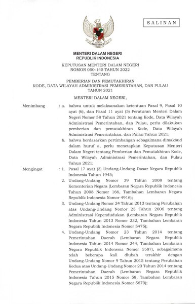 从中央政府技术官僚的角度来看,这并非一个凭空产生的决定。它实际上是对一系列更早行政编码工作的正式确认。其依据可追溯至2008年、2017年和2021年的一系列跨部门会议和核查工作,在这些过程中,四岛均被记录在北苏门答腊的名下。这一系列行动的高潮是2022年发布的第050-145号内政部长决定书,该决定书已将四岛纳入北苏门答腊的行政编码。甚至在2012年,印尼政府向联合国提交的岛屿名录中,这四个岛屿也被列为北苏门答腊省的一部分。