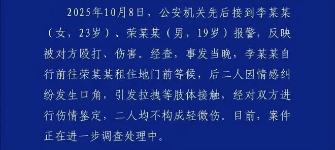 警方确认两人确实有情感纠纷,并且动了手,只是还不足以构成轻微伤。