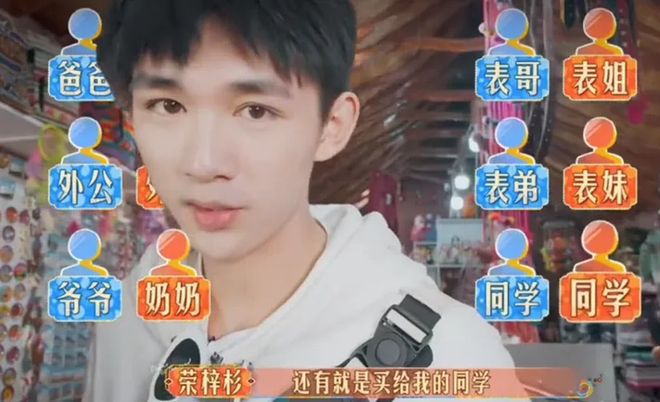 节目组给了嘉宾旅游经费,本来这种经费就紧巴巴的,最后余出来一部分让他们买一些特色礼物互相赠送,立和睦的人设。但荣梓杉却擅自支配经费,把这钱都当成自己的,买了一大堆东西说要回去送自己同学朋友。