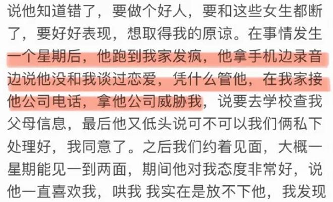 事情说到这还挺偶像剧感觉的,但是交往不到三个月,荣梓杉就突然变得忽冷忽热,长时间冷暴力李禹熹。李禹熹不知道男友为什么突然变成这样,找不到荣梓杉就从他身边的人找起,结果不找不知道,这么一找才发现他同时和三个女生搞暧昧。