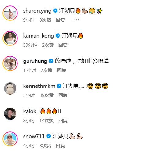 马国明、江嘉敏、黄翠如、傅嘉莉、张彦博、朱敏瀚、洪永城、邢慧敏、蒋家旻等人纷纷表示:江湖见!