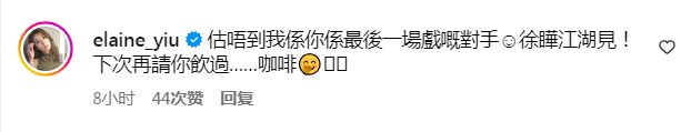 姚子羚:估唔到我系你系最后一场戏嘅对手,徐瞱江湖见!下次再请你饮过……咖啡
