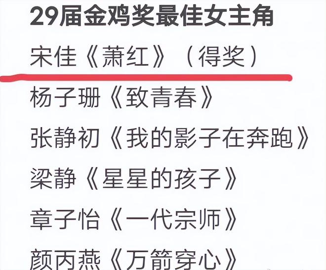 这已经不是宋佳第一次被吐槽拿水奖了,她是二封金鸡影后,第29届金鸡奖上宋佳也拿了影后,当时入围的有章子怡和颜丙燕,两人的代表作《一代宗师》和《万箭穿心》无论是作品知名度还是角色出彩程度,都比宋佳强多了。