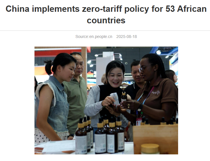 张维为:我们这次宣布给非洲所有与中国建交的国家零关税——只有一个国家还没建交,其他国家产品进入中国都是零关税。当然这是一个过程,开始有不少国家零关税,最近又加了一批,全部免关税。
