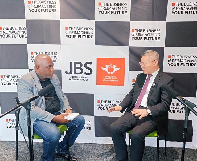 主持人:接下来请大家看一下张教授在南非跟吴鹏大使和布萨尼教授对话的片段,听听他们对中非合作怎么说。