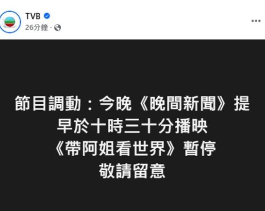 无线方面亦作出节目调动,《晚间新闻》提早于晚上10时30分播出,原本时段播出的节目《带阿姐看世界》则暂停播映。
