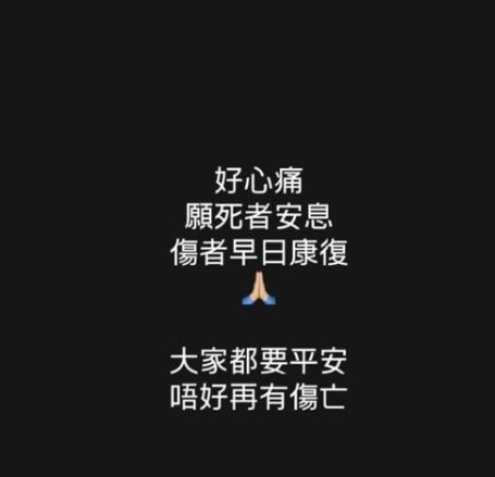 艺人林盛斌(Bob) 则表示:“好心痛,愿死者安息。伤者早日康复。大家都要平安。”
