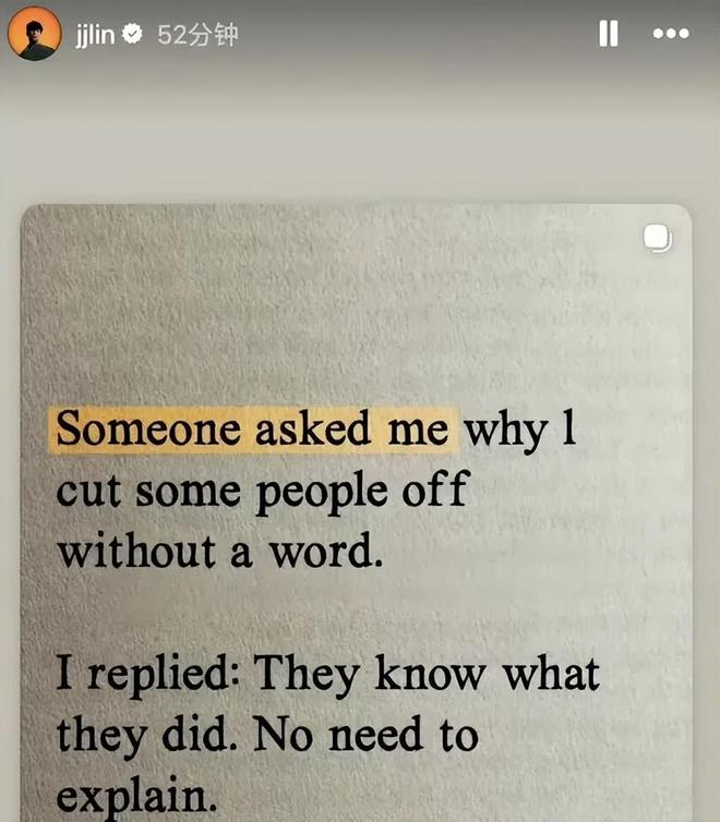 不过显然林俊杰对这段恋情挺满意的,还特意发了动态回应,说自己已经和某些人断绝关系,至于原因这些人自己心知肚明,然后又发了“耐心”,和默认差不多了。看来这次确实是遇到合心意的,想要安定下来了。